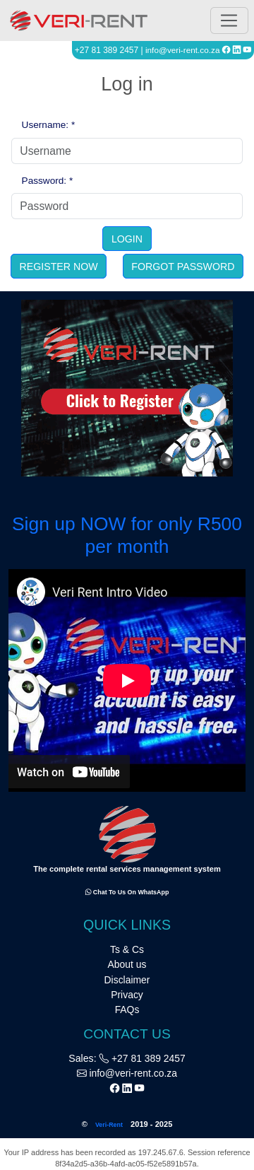 Joining Veri-Rent is quick, easy and affordable. Simply register, log in and pay your subscription to get going.